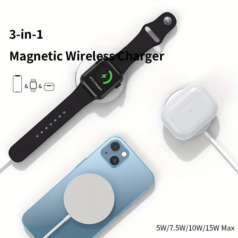 HYDGYC 3-in-1 Magnetic Wireless Charger, Compatible with iPhone 12/13/14/15/16, AirPods 2/3/Pro. Fast charging products are compatible with common protocols including, but not limited to, PD, PPS, and QC. Prior to purchase, please review the product specifications to verify compatibility with your charging cable and device model. Do not use in humid, high-temperature, or flammable environments.