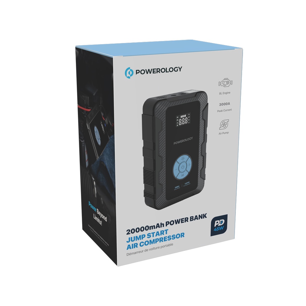 Be prepared for any roadside emergency with the Powerology Jumpstart with Air Pump. This device is capable of jumpstarting engines up to 8L with a peak current of 3000A. It also features a powerful air pump that can inflate up to 160 psi, making it perfect for tires and sports equipment. With a 20000mAh (74Wh) battery capacity, it offers plenty of power, and the PD 45W charging input/output ensures quick recharges. The device includes a USB output of 18W for additional charging needs. The air pressure sensor accuracy is within ±1psi, and it operates quietly at 80dB. With an operating temperature range for charging from 0°C to 45°C and discharging from -10°C to 45°C, this versatile tool is perfect for various environments. The inflatable tube length of 435mm ensures ease of use. Compact and efficient, this jumpstart kit is an essential tool for your car, ensuring you’re never stranded